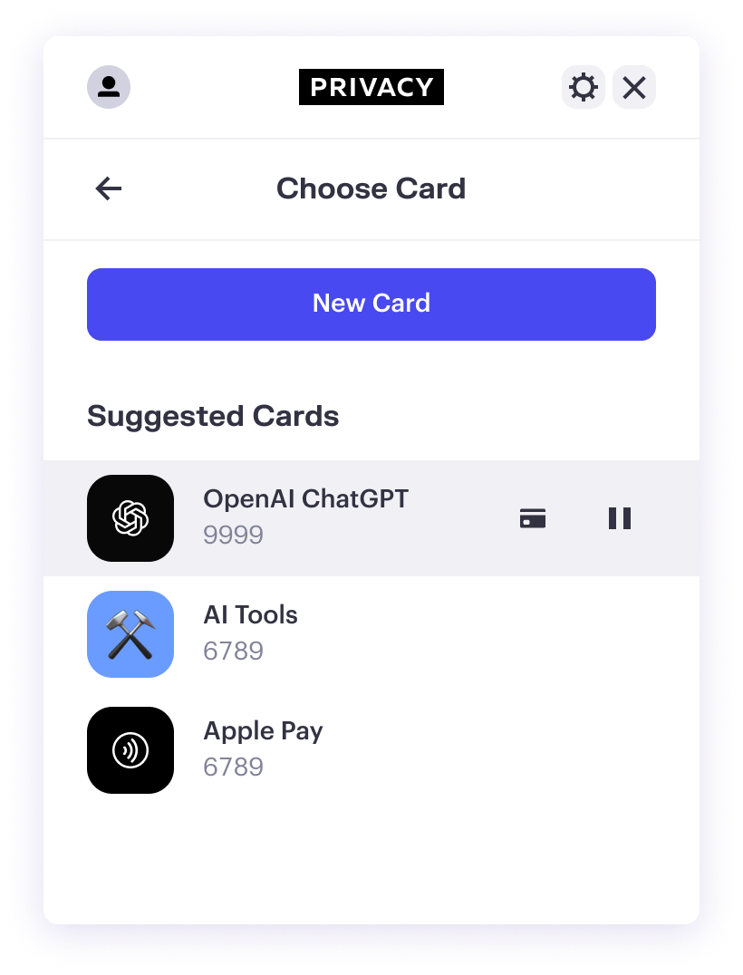 Easily create new Privacy Virtual Cards when you shop online.